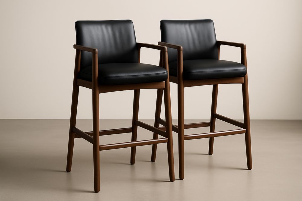 Lot de 2 tabourets en bois massif et simili cuir noir